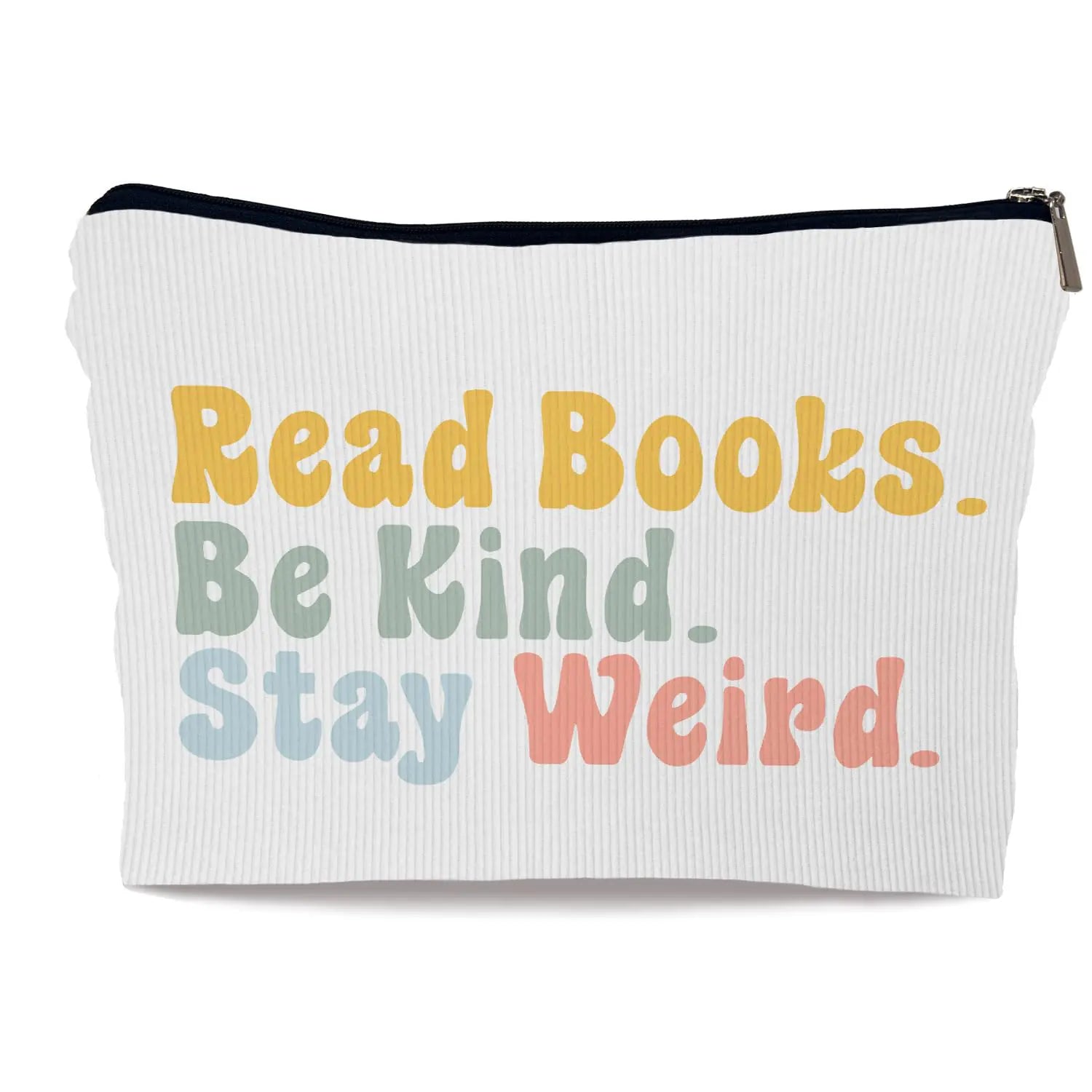 Express your personality with our exclusive patterns and uplifting slogans like Read Books, Be Kind, Stay Weird. The vibrant prints and script lettering make this bag as charming as it is functional.