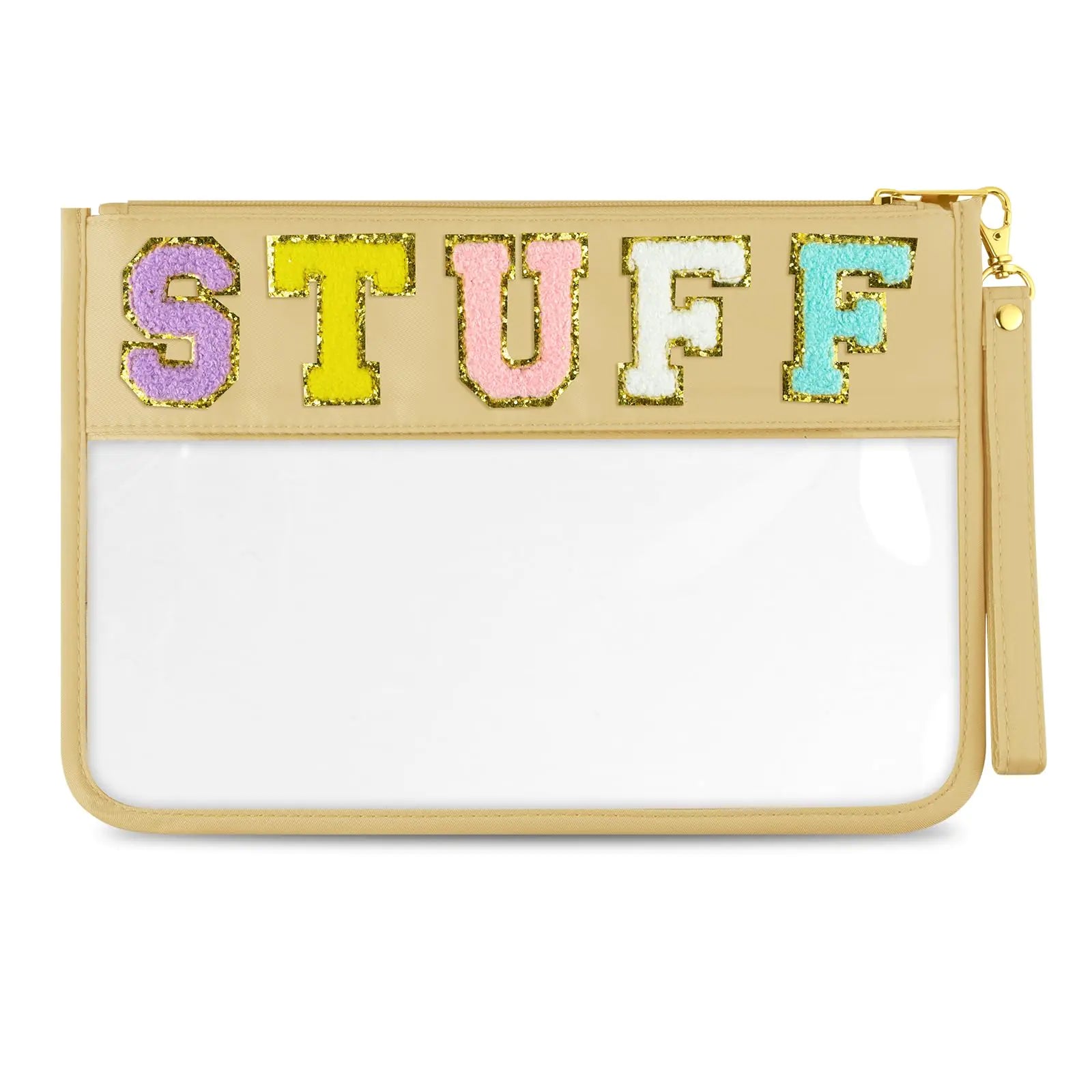 💖 Cute & Personalized Design – Features colorful glitter chenille letters sewn onto a clear PVC base for a trendy, fun look that makes your bag stand out.